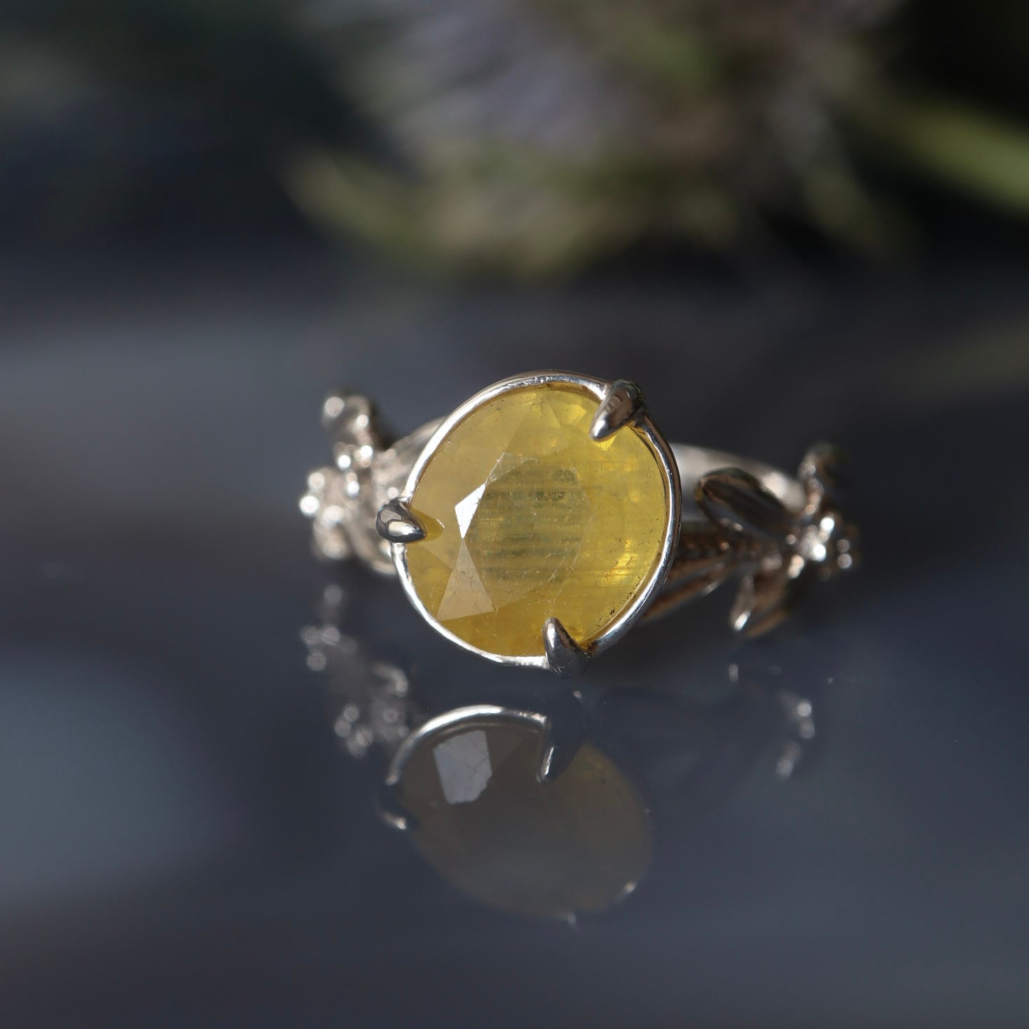 イエローサファイア オリーブモチーフのリング【1点限定】
