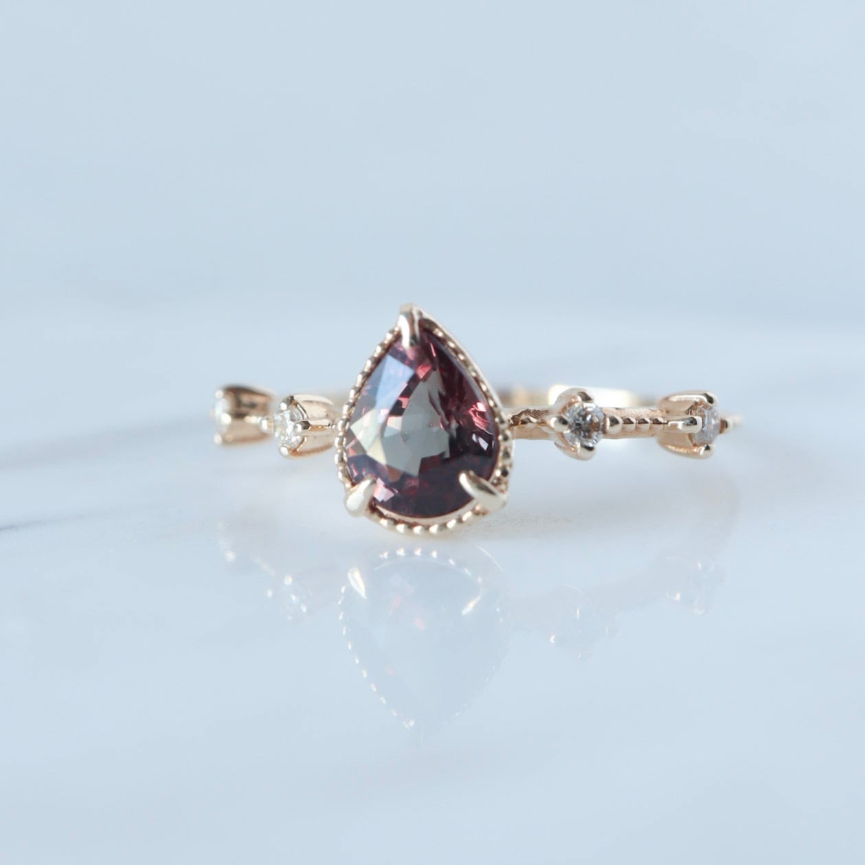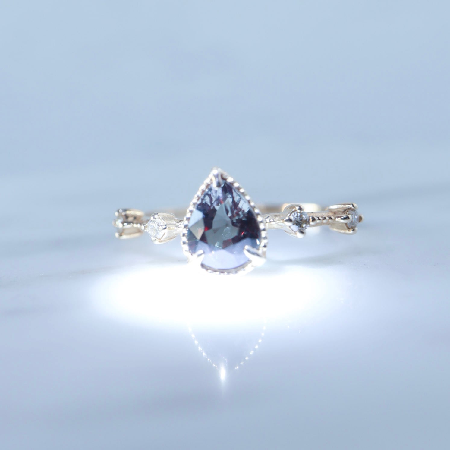 光の加減で、その時々のニュアンスを繊細に映し出す表情豊かな一粒。